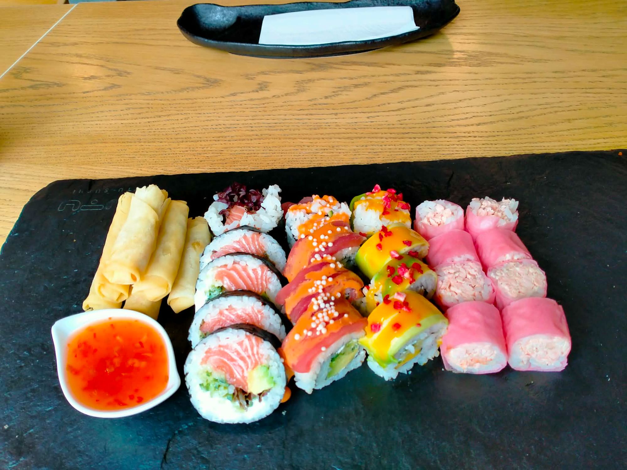 tuńczyk, łosoś, krewetka w panko, awokado, ogórek